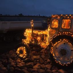 Pärnust Tõstamaa poole jääval romantilisel rannateel saab pimedatel talveõhtutel imetleda jõulutuledega kaunistatud rasketehnikat.