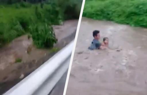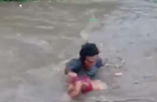 VIRAL: Batang inanod sa rumaragasang tubig, nasagip