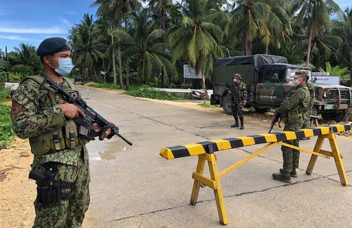 LOCKDOWN IN SIARGAO. Army and police personnel man a checkpoint in Barangay Cabitoonan, General Luna in Siargao Island Wednesday (5 August 2020) when health authorities declared a five-day “temporary complete lockdown” in the village after four residents tested positive of the coronavirus disease (COVID-19) in a rapid test. Confirmatory tests are yet to be conducted on the patients but the Rural Health Unit said it is assuming “probably local transmission” until RT-PCR results are out. ...