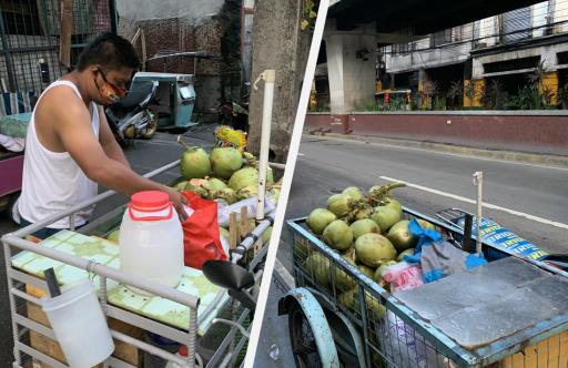 MAYNILA - Ngayong ilang buwan na silang hindi makapasada dahil sa coronavirus quarantine protocols, nagbebenta ngayon ng buko ang ilang jeepney driver sa Maynila.
