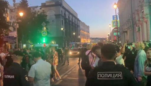 После окончания голосования на выборах президента Белоруссии полиция начала оттеснять людей от здания московского посольства республики на улице Маросейка