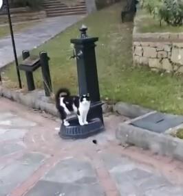 Кот попросил помощи с питьевым фонтанчиком и мужчина не смог ему отказать.