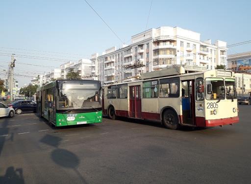 В центре Челябинска вечером в четверг, 6 августа, произошло ДТП с участием троллейбуса и пассажирского автобуса