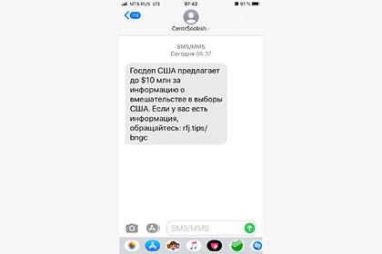 Жителям России стали приходить СМС о способе получить 10 миллионов долларов от Госдепартамента США. В сообщениях россиянам предлагают эти деньги за информацию о вмешательстве в американские выборы. Ссылка в сообщении ведет на верифицированный аккаунты программы ведомства США.