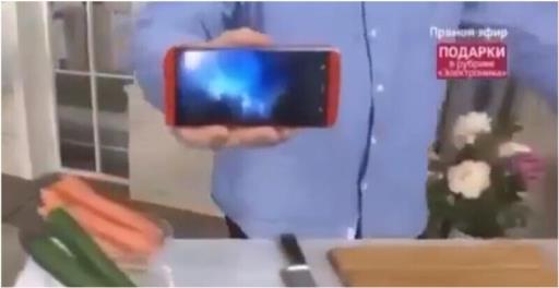 Во время демонстрации неубиваемости смартфона в прямом эфире телемагазина что-то пошло не так. Забавный казус рассмешил и самого ведущего.