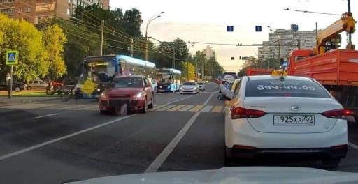 В Москве доставщик еды не слез с велосипеда, проезжая по пешеходному переходу, и был сбит автомобилем.